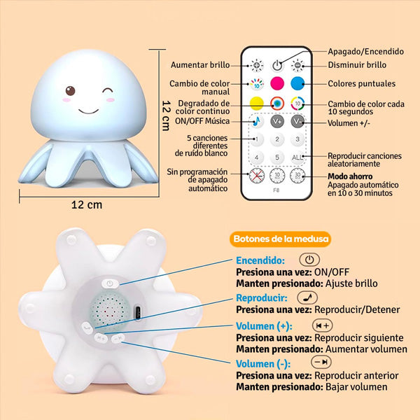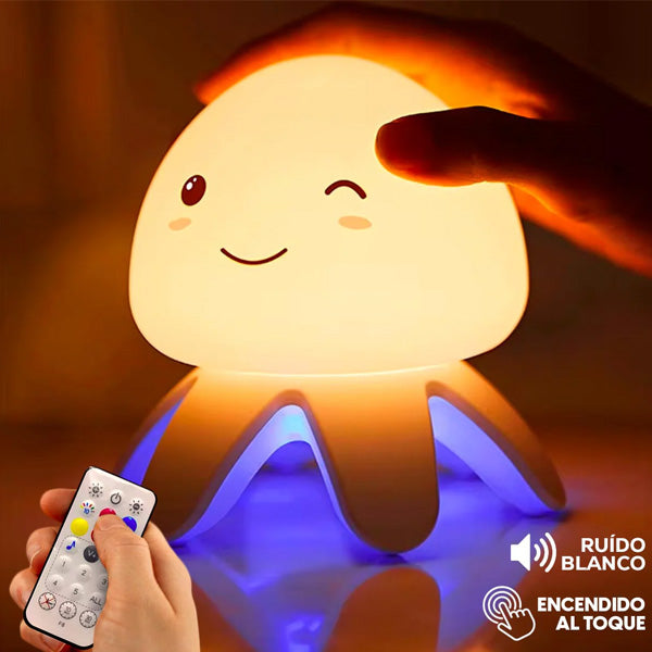 Con su ruido blanco suave y envolvente, esta lámpara genera un sonido constante que bloquea los ruidos externos, ayudando a tu cerebro a entrar en modo descanso. Es perfecta tanto para adultos que buscan un descanso reparador como para niños que necesitan sentirse seguros y tranquilos al dormir.