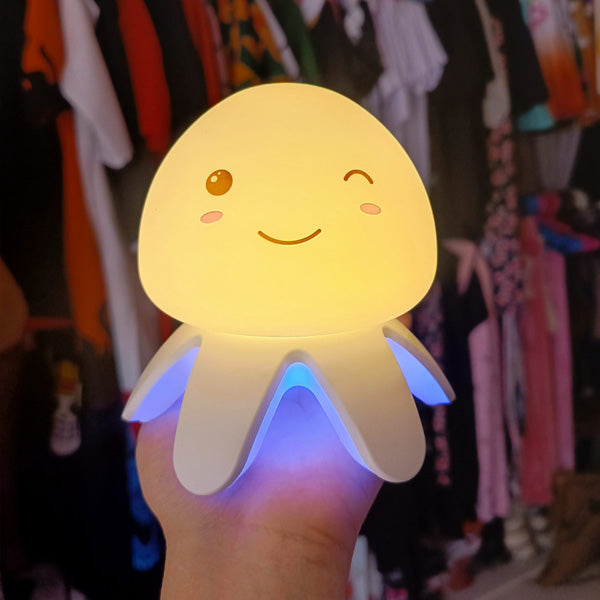 Fabricada con materiales de tacto suave y espichable, esta lámpara no solo ayuda a dormir mejor: también es perfecta para aliviar el estrés. Basta con apretarla para sentir cómo la tensión del día se disuelve entre tus manos.
